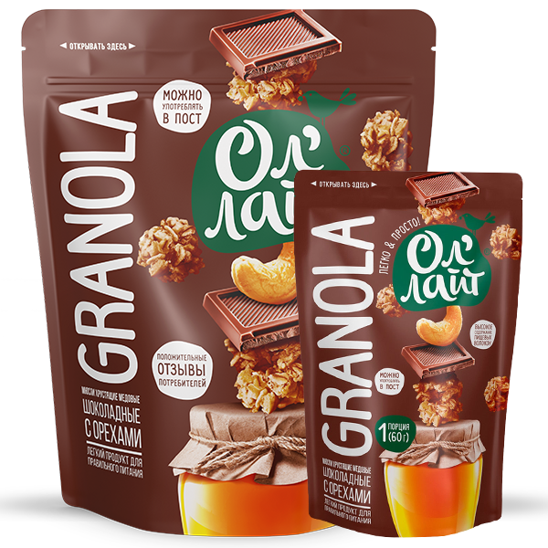 Мюсли хрустящие медовые т.з. "Ол'лайт" шоколадные с орехами 280 гр/60 гр