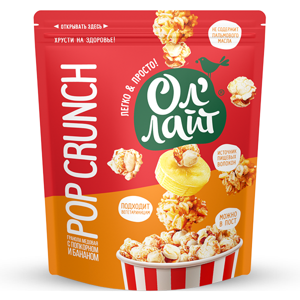 Гранола медовая с попкорном и бананом "Ол'лайт" 40г