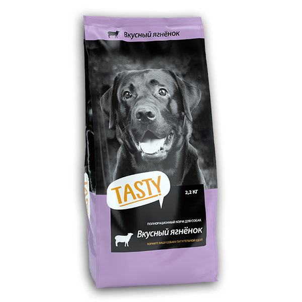 Корм сухой полнорационный для взрослых собак с ягненком TASTY 2,2 кг.
