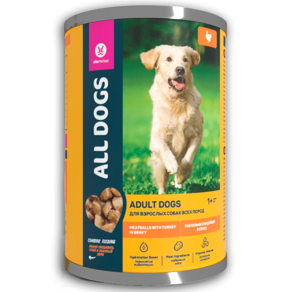 Корм консервированный полнорационный для собак тефтельки с индейкой в соусе, банка, 415 г.