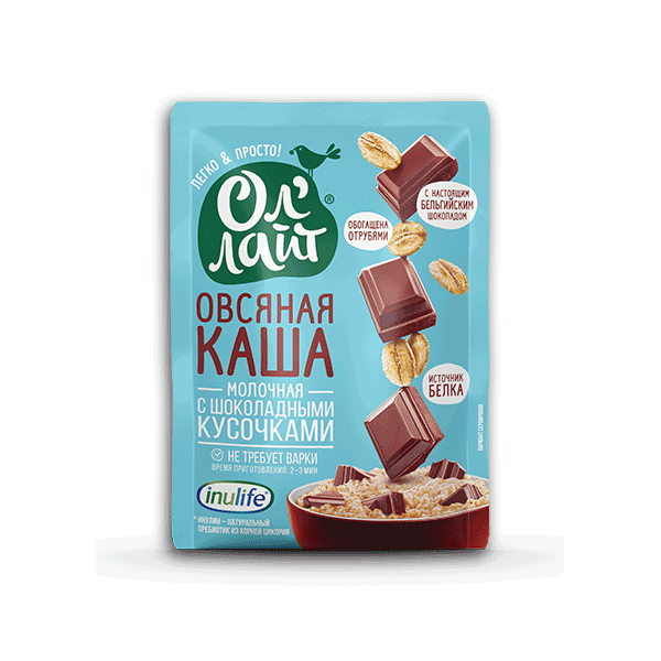 Овсяная молочная каша быстрого приготовления "Ол'лайт" "С шоколадными кусочками" 40 г