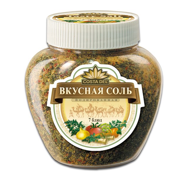 Состав: Соль поваренная пищевая выварочная йодированная, паприка, чеснок, петрушка, тмин, мускатный орех, кумин, куркума