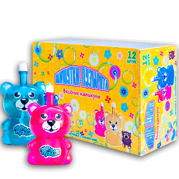 Драже "Веселые каникулы" с игрушкой "мыльные пузыри" (Мишутки-пузырята), масса нетто 4г, объем 50 мл., арт.