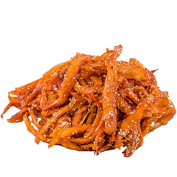 Сушено-вяленая пищевая рыбная продукция. Кальмар тихоокеанский сушено-вяленый с перцем чили и кунжутом (рваный) 1000 г